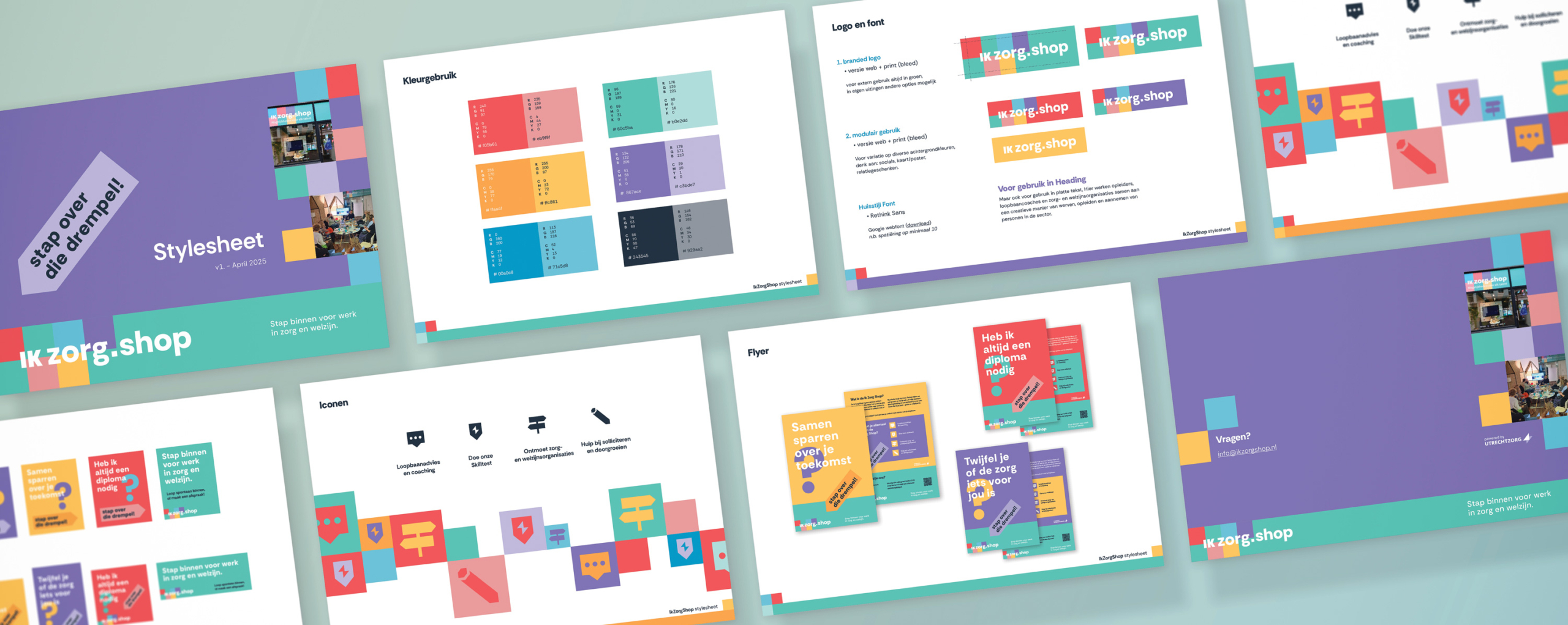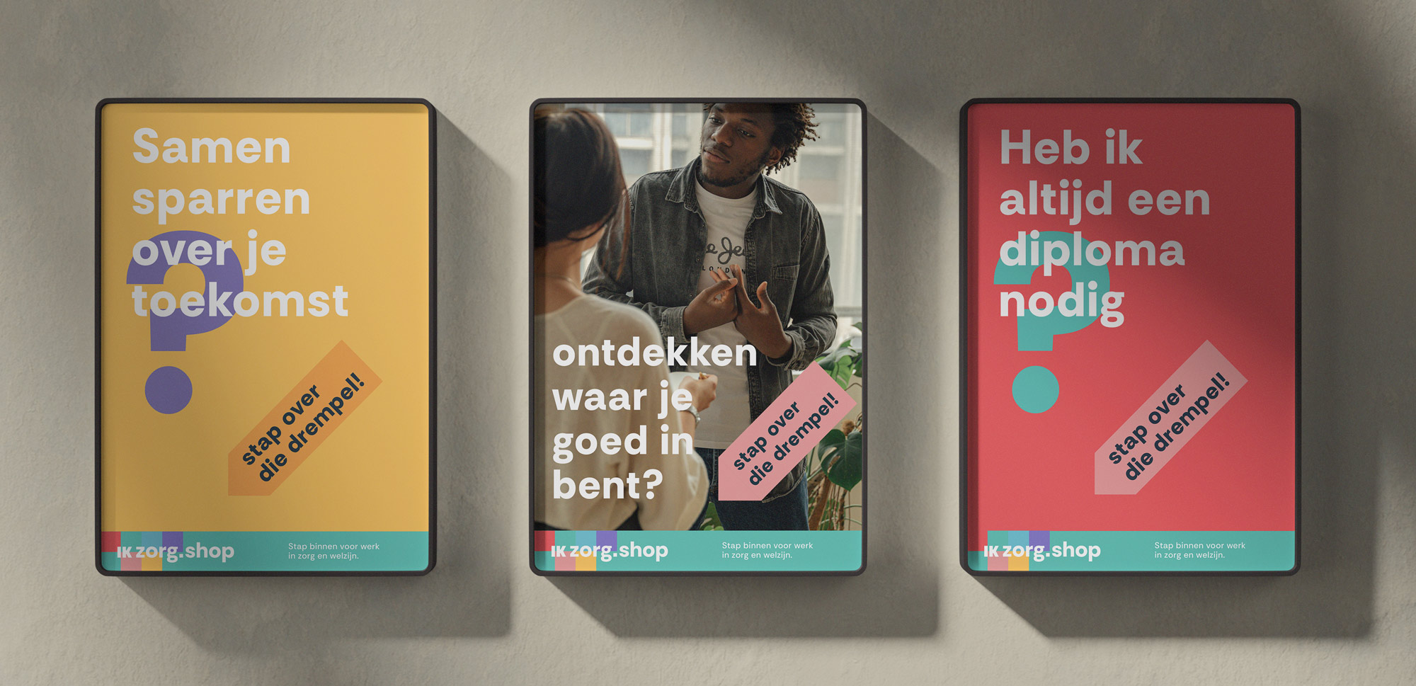 Dit uitgangspunt hebben we vertaald naar een campagne. We hebben de look & feel opgefrist en verschillende promotionele uitingen uitgewerkt. Hiermee kregen medewerkers en organisaties toegankelijke middelen om geïnteresseerden te informeren over de mogelijkheden binnen zorg en welzijn. Het kleurrijke palet zorgde voor een hoge attentiewaarde in het straatbeeld en werd doorvertaald naar de inrichting en signing van de winkel.
